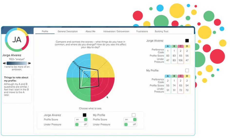 By sharing and comparing HBDI® profiles within the Herrmann Platform, you learn about your colleagues’ profiles and gain insights that lead to better collaboration. Find areas of commonality and differences. Improve transparency between team members by sharing profile insights for better communication and trust-building.